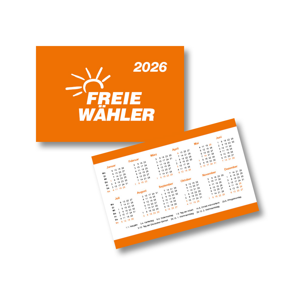 • Mit FREIE WÄHLER Logo auf der Vorderseite und Kalendarium 2026 auf der Rückseite